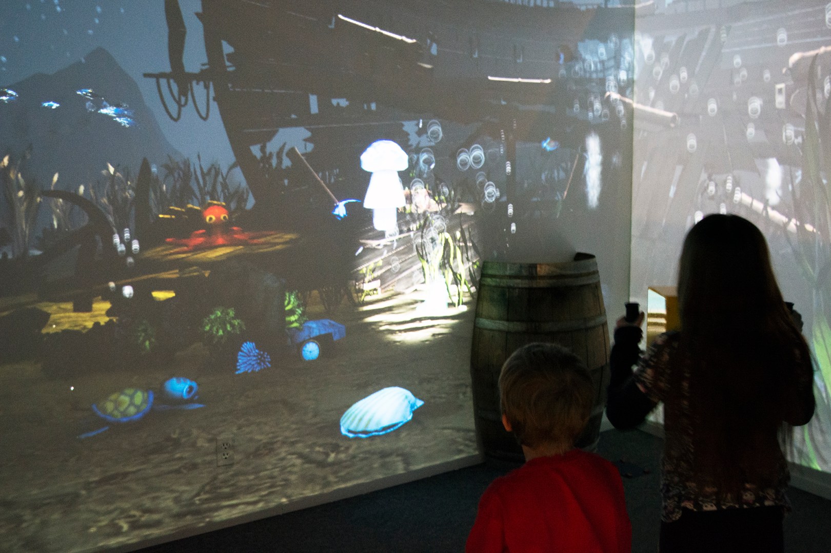 The Anthony of the Arctic project is an interactive installation at Vancouver Maritime Museum that lets children use a digital “flashlight” to explore an underwater shipwreck scene, interacting with objects and undersea creatures. Anthony, the museum’s mascot character, takes kids on a treasure hunt to find hidden nautical items and learn more about them.